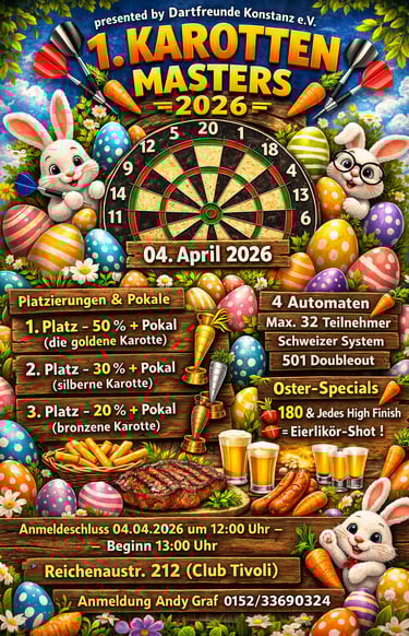 Postanschrift: Dartfreunde Konstanz Berchenstraße 55 78467 Konstanz Mobil: +49152/33690324
